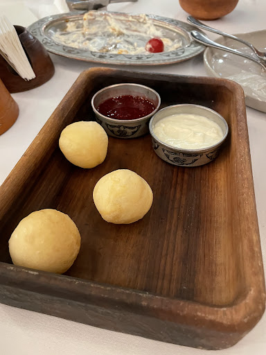The menu was also different — both in terms of selection and the feel of the dishes. Some items I was looking forward to weren’t even available. I specifically asked the server if the baursaks came with sour cream, not jam, and she confirmed yes. But when they arrived, they were served with jam. Sour cream was brought out only after we had finished the baursaks and started our mains. To top it off, there was an unexpected ₸600 charge for the sour cream, even though it wasn’t listed as a separate item on the menu.