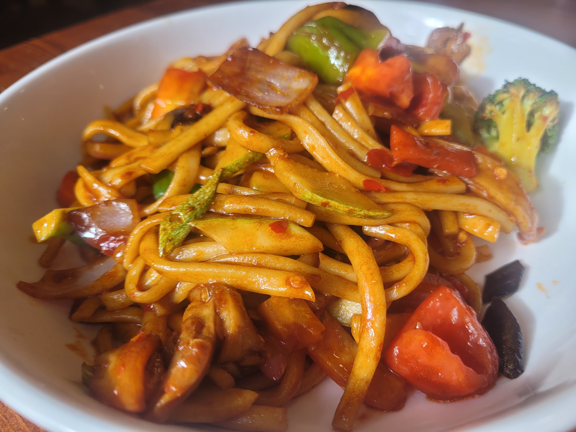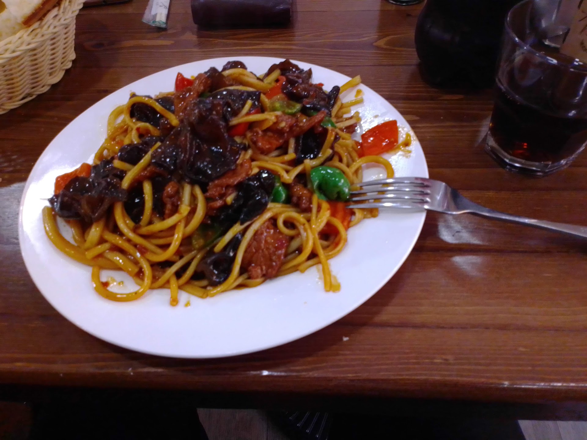 Oh my gosh, WOW. This vegan lagman was one of the best things I ate in Central Asia. The noodles were homemade, lusciously thick, and with an amazing chewy texture. The sauce was exquisite and balanced to perfection. The veggies were crisp and fresh, and the marinated mushrooms were deliciously meaty in the best plant-based way. The dish was so good that I (literally) called home about it!