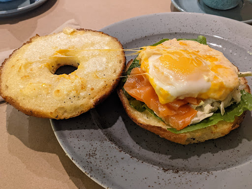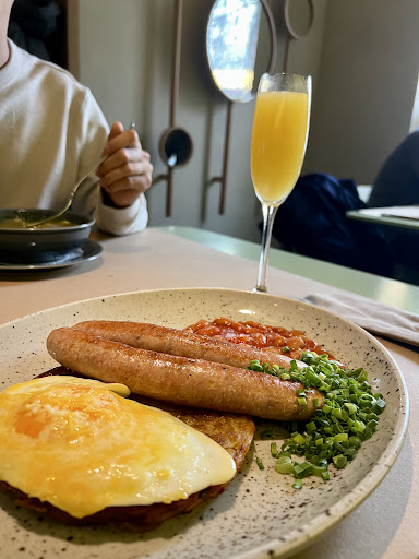 Read moreI arrived with low expectations because I had read the review of someone whose opinion I trust, but I'm always looking for a new Sunday morning brunch place. We thought it was pretty good. I certainly didn't expect to have needed a reservation but that's the first thing they asked me when we walked in and we didn't have one. They still gave us a table back by the bathroom. I guess beggars can't be choosers. My bagel didn't have the right bagel texture, it was soft and tasted more like a soft bun but the overall taste of the sandwich was good. His potatoes were delicious while the beans and sausage were just okay. The interior design was fantastic and service was great. The screaming child at table next to us the entire one we were there didn't do too much to lower anyone's anxiety levels on this crisp...