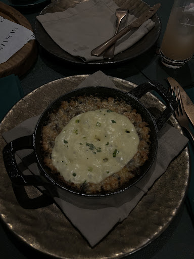 Read moreНа мой взгляд это самое атмосферное место в городе. С шикарным интерьером и приятно теплой атсмоферой в сопровождении прогрессивной музыки от лучших диджеев города. Многие могут не согласиться, но меня это не удивит. Потому как многие могут не разбираться в тонкостях или не видеть неподдельно дорогие вещи и не знать их ценность и даже саму цену. В интерьере присутствуют очень дорогие материалы и мебель с декором. Многое выполнено специально на заказ и только для этого интерьера. Что касается меню - оно не содержит ничего попсово простого. Да исключительно эксклюзивных вещей уровня известных звёзд вы не найдете. Но вот например укреветки в чёрном кляре с подачей на углях(не съедобные!) Это уже выход из зоны комфорта и для нашего региона вполне свежо. Отдельной похвалы заслуживают маринады, особенно помидоры черри, их мы даже заказывали отдельно. Дегустация коктейлей прошла на ура! Сразу скажу, что я больше по джину и все коктейли оказались на твёрдые 5. Вообще джин самый коктейльный напиток планеты если кто не знал. А тут на настаивают джин на манго для одних коктейлей, а для других на какао и молочном улуне. Вкус деликатный, скорее похожи на композиции из полутонов. Такие коктейли подойдут для неспешного вечера освежающий и сбаласированные. Конечно в моей дегустации были пара более крепких и ярких уже на кальвадосе и мискале. Отличный вечер! Утром я решил прогнать свои ощущения и провести деловую встречу. Чем был максимально доволен. Система вентиляции в заведении не давала запреть моим мыслям о вчерашней нагрузке а бодрый официант любезно подливал мне минеральную воду видя как часто я в ней нуждаюсь. После я отпил вкуснейшего кофе и с удовольствием понаблюдал за уличной суетой у торгового центра через шикарное панорамные остекление этой...