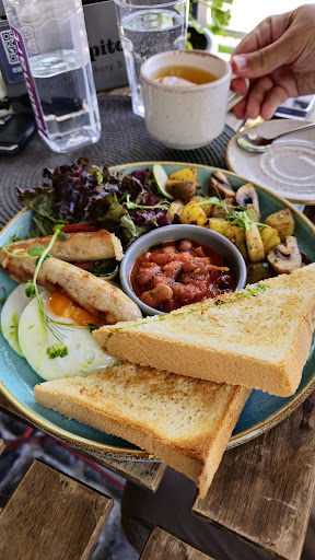 Read moreО еде: мы заказали сэндвичи в лепешке с курицей, салат цезарь, ирландский завтрак и чай. Сэндвичи были с капустой, курицу я никак не могла обнаружить, потому что её было всего около 15 грамм на порцию. Цезарь также состоял из капусты, очень сухой, гренки не хрустящие, а засохшие. Курица в цезаре все же присутствовала, но это не спасло блюдо. Соуса в салате не было. Завтрак состоял из сосиски, хлеба, фасоли и яичницы. Супругу понравилось. Чай прекрасный. Обслуживание очень внимательное. На улице конечно не самые удобные столики, некоторые...