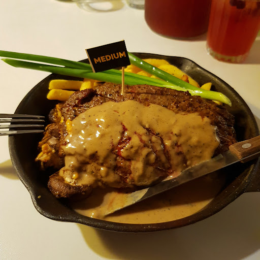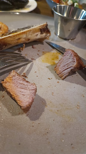 Скажу честно, ещё раз бы наверное не пошла. Возможно я неправильно изначально выбрала заведение, в том плане, что хотелось вкусно покушать, всё это дело сопроводить крепкими и не очень напитками, а завершить десертом) По мясу, я взяла баранину стейк. Я попросила девушку официанта полную прожарку, однако она была далека до полной, ну да ладно, думаю, попробую что-то новенькое! Но это невозможно было жевать! Мясо было жёсткое, тугое, короче не вкусное. Коктейли были нормальные, т.е. вкусные, ничего выдающегося. На десерт я заказала тирамису. Во первых он не соответствовал изображению в меню - на фото он был гораздо меньше, чем тот что принесли. Вроде это неплохо, но я просто физически бы не смогла съесть такой большой десерт, и получается оставшееся на выброс. По мне это не есть хорошо! Но апогеем было то, что видимо его достали из морозилки прям перед подачей. Бог с ним, что оно из морозилки! Ну дали бы ему оттаить хотя бы, я же не торопила из и сама не торопилась. А кушать пирожное со льдом, как то не айс))) А вот чай с мятой был вкусный! За...