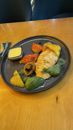 Заказал себе имбирный чай и и куриное филе с соусом манго и овощами на гриле. Имбирный чай был прям имбирным чаем, таким обжигающим слегка. Куриное филе тоже вкусное, но ге более чем перекус.