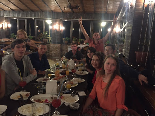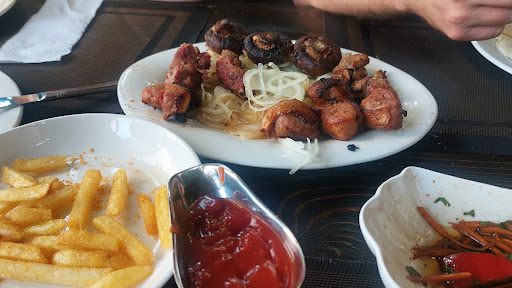 Read moreБыл здесь в первой половине дня 25.10.2020 г. впервые по рекомендации знакомых ребят. Нужно было покормить гостя, который приехал на Алматы-1 и потом надо было ехать за город в сторону Капшагая. Поэтому выбор и пал на это кафе. Первое что бросилось в глаза - интерьер в стиле трактира конечно подустарел. Заведение выглядит изнутри немного мрачным на мой взгляд. Очень массивные столы и стулья из дерева модные ещё 10 лет назад. Кому-то наверное они нравятся, мне уже нет)). Санузел чистый (по крайней мере мужской) но не блещет аккуратностью. Видно что нужна мужская рука)) Обслуживание неплохое, опытный официант предложила блюда которые мы и хотели. Как она это угадала я не понял))) молодец)) Заказали говядину и форель. Замудренные названия блюд не запомнил, к сожалению. Салат из свежих овощей был очень острым. Официант не предупредила... Приготовили горячее не быстро и не долго. Наверное реально готовили)) Форель была обильно залита белым густым соусом. Проглядывались лишь силуэты рыбы.На мой взгляд перебор. Но на вкус оказалась неплохой, хотя наверное форель сложно испортить. Говядину подали оригинально - на деревянной доске. Часть мяса с костью была приподнята и опиралась на воткнутый в доску небольшой нож. Другу мясо понравилось. Кофе в тот день закончился, к сожалению. Фреша из меню тоже не было. Пришлось пить Ташкентский чай. Вкусный. Спиртное не брали)) Счёт вышел не дорогой совсем. По 4000 тенге на человека. Приду ли сюда ещё не знаю. Наверное только если не будет других вариантов в...