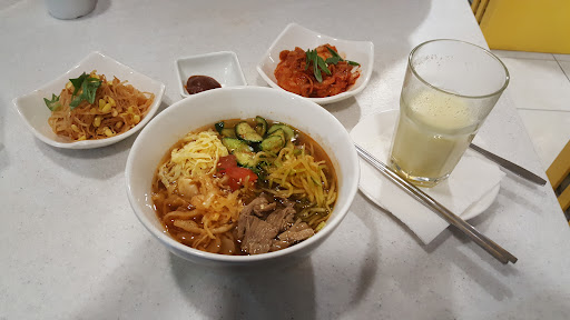 Read moreДавно хотела тут пообедать. Минус того что помещение на Тимирязева маленькое, а посетителей много, они ждали по среди зала. и персонал не помогает с выбором блюда. Так как я впервые здесь, я не знакома с названиями и содержанием блюда. Пришлось выбирать на угад. Токпоки были средней вкусности. Теперь плюсы)) Фунчоза с рисом, телятиной и овощами была очень вкусная (жаль мяса мало). Холодный кофе замечательный, хотя особо не удивил. Персонала много, заказ принесли в течение 12 минут. Проходимость большая, столики в обед заполнены до отказа. Может я ошиблась с выбором блюда. Быстро пообедать здесь вполне возможно. Моя оценка 4. Надеюсь администрация учтет пожелания и в следующий раз будет от меня...