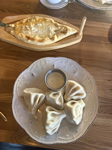 Read moreБыли в субботу днем. Посетителей не много, но большинство отдыхали большими семейными компаниями. Мы заказали хачапури по мегрельски, шашлык баранину 140 гр, шашлык утку, шкмерули, хинкали, салат с баклажанами в соусе sweet chili, ташкентский чай, компот Хачапури-порция большая, сыра много. Понравился. Шашлык утка, хороший маринад, мягкая. Шашлык баранина 4 из 5. Маринад хороший, но некоторые куски были с прожилками и жестковаты. Хинкали сочные, немного пересоленные, подаются с соусом. Шкмерули- порция очень добротная, соус вкусный сливочный, соуса много, но немного пересолен. Куски курицы местами немного жестковаты и пересушены. Салат вкусный, соуса достаточно, подача с сыром очень удачная. Ташкентский чай подается с медом и смородиновым вареньем. В жаркий день очень хорошо заходит. Компот из персиков тоже понравился. А вот обычная вода только в стеклянных бутылках и очень дорогая. Мы сидели на террасе, свежий воздух. Терраса может открываться-закрываться в случае дождя. Вид на склон напоминает джунгли в Тайланде. По ценам чуть выше среднего. Обслуживание...