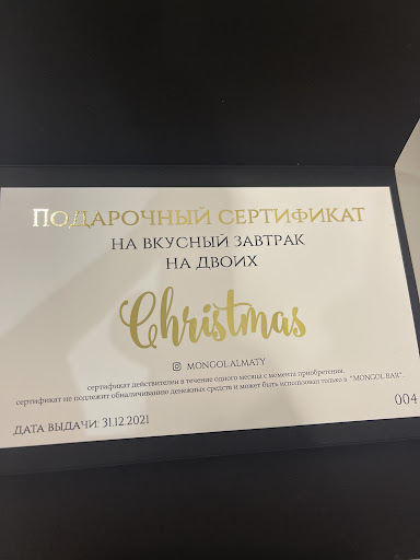 Very unprofessional .We were there on new year night was not good experience. But we have been gifted a card for breakfast. So after a week we decided to go there and use the gift card for breakfast. When we entered we asked the waiter that we are here to use this gift card. We were ordering than the waiter came that for the breakfast there is another menu we said ok. We have been told by manager that one main course can be order to use this gift card so we ordered two and we ordered coffee on extra charges which was fine. But later when we asked for the bill they issued the bill and included the main course price. I asked that it suppose to be gift or free of charge . The waiter said sorry this course was not included in the gift package lol. I told him that i talked with ur manager he said sorry she did mistake lol You guys can come next time and can use this gift card. we didn't say even a single word and just paid the money and said thanks don't expect that next time we will come here because they got we are foreigners. So guys i believe now on people reviews it actually help lots of people before they go some where and it also aware the business how to treat and fix their customer service. Next time you guys to to this mangol bar make sure about the prices and ask everything from the start. Especially when they know you are foreigner they will just put extra money or ur bill. I am uploading the gift card photos card looks nice but it doesn’t has value and...