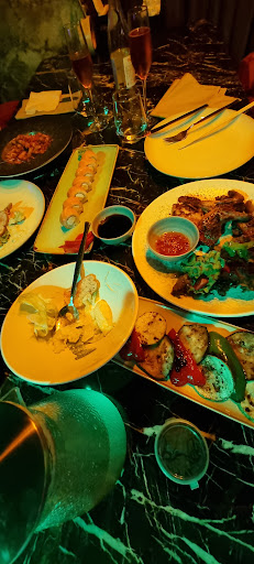 Попали туда случайно на Мой ДР, 9.08.23. Были очень удивлены дизайном, очень красиво, стильно, не нагруженно. Столы из искусственного мрамора (дого-богато). Внутри 5 просторных зон, сцена и танцпол. Плюс отдельно vip зал с караоке на 10-12 человек и летник на улице. Итого 7 зон. Каждый день живая музыка, у нас пела девушка с отличным репертуаром. Весь вечер поддерживала атмосферу. Обслуживал на в зоне на подиуме парнишка, очень вежливый и учтивый, не помню имени. По блюдам брали салат ЦЕЗАРЬ - листья Айсберга настоящие не капуста, соус вкусный, приятный, но мне его было мало (показалось суховато) при том что порция средняя, роллы Калифорния - не жирные, рис не слипшийся, сыр нежный, рыба свежая (толщина приемлемая), Паста пенне и соус Болоньез - ооочень вкусно, соус в меру с кислинкой и душистым ароматом трав, Цыплёнок на гриле с листьями салата и черри - действительно Цыплёнок , а не взрослая, старая🐔. Мясо сочное, с ароматом гриля, очень вкусно. Из алкоголя взяли розовое игристое вино (произ-ва РФ) SANTO STEFANO совсем не плохое👍🏿. По акции (по средам дали вторую бутылку в подарок). По итогу вечер прошёл отлично, дожидаться 12 ночи не стали, в это время на сцене поздравляют именинников. В добавок забронировали ВИПку...