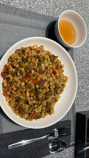 Заказали два вида лагмана и сельдь под шубой. Соотношение цена/качество - 2/5: крайне не рекомендую к посещению, очень плохой опыт! Официанта пришлось звать несколько раз, подошла очень замученная девушка и без энтузиазма приняла заказ. Лагманы принесли холодные, с кое-как порезанными сырыми овощами и сухой кожурой красного перца-ужасно. Салат сельдь под шубой на удивление оказался и правда хорош. Отдельного внимания заслуживает атмосфера здесь, вроде симпатично выглядит, но если посмотреть ближе вся мебель очень грязная и уставшая. Заведению очень рекомендую ввести систему поощрения для официантов, а также обратить внимание на качество финальных блюд и...