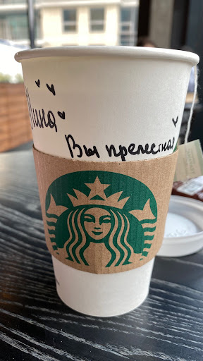Read moreСамое главное очень вкусное кофе чистое помещение вежливый персонал, И самое главное что мне нравится в Starbucks это очень вкусные десерты закуски очень-очень-очень вкусные и это прямо замечательно. Весь мир любит этот бренд Все любят пить кофе там, по мне и так везде вкусно готовят кофе я и сама могу Хороший кофе приготовить но пить в Starbucks Кофе это наверное лучше чем просто кофе или в другом месте взять всё-таки бренд берет свое. Многие молодые люди любят фотографировать стакан и выкладывать в социальные сети. Для многих этот бренд представляет будто что это или то хотя это не так это обычные кофейня Где делают очень вкусное кофе и хорошо обслуживает также десерты, десерты как я сказала очень вкусные. Уют удобство расположения персонал частота помещений это наверное основа того что люди приходят туда и я тоже очень люблю там...