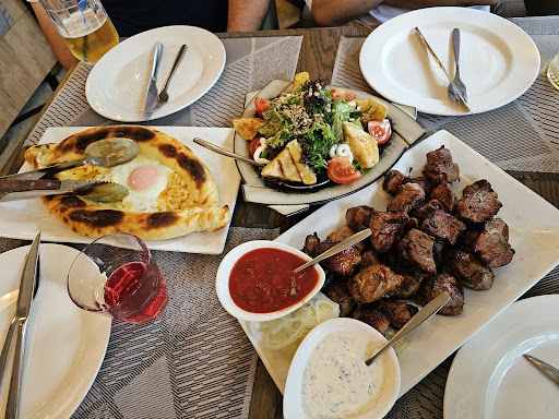 Read moreХотите хлеба и зрелищ, тогда вам сюда. Из зрелищ вам будут толпы азербайджанцев, которые просто раздевают глазами, а потом выслеживают по номеру машины, пробивают через страховые компании номер телефона и имя и названивают. Плюс к этим откровенные проститутки всех возрастов и разной степени страшности, но одинаковой степени опьянения. Далее - обслуживание. Официанты наглые до ужаса. Заказала компот, но не холодный только! 2 раза сказала. Принесли естественно холодный. На просьбу принести все таки какой попросили, он ответил - давайте я вам горячей воды принесу. То есть компот, который и так по сути вода с сахаром из под сухофруктов надо было разбавить ещё сильней горячей водой до состояния просто воды. Все таки сходил подогрел и сказал, что никогда такого не делал. Типа мне одолжение сделали. Шашлык - филе баранины 1800 тг вообще ни о чем. 3 куска мяса. Совершенно не вкусно. Шашлык из сёмги это пожаренный стейк как будто на сковородке толщиной меньше 1 см. Салаты обычные совершенно не стоят своих денег. Хычины одно название. Просто тесто с маслом. Никакого сыра там нет и в помине. Ещё перед тем как занять стол официанты не разрешали садится за тот стол, который выбрали. И только тогда, когда сказали, что не по чоколайфу, только тогда разрешили. Это капец какой то. Это был первый и последний раз. Никому не советую. Если конечно не стоит цель найти кого то на ночь,...