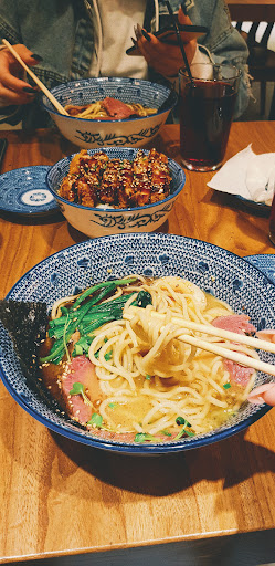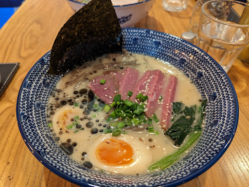 Read moreОчень понравилось данное заведение. Строгая пятерка по всем пунктам. Стоит отметить что места внутри довольно мало, но это не минус, а скорее особенность, так как это никак не влияет на общее впечатление. Внутри уютно, общий интерьер очень стильный, все чисто и аккуратно. В целом атмосфера очень спокойная и приятная. Заказ приняли моментально и принесли быстро - 10 минут и рамен уже красуется на нашем столе. Рамен будто с картинки - аккуратно и красиво сервирован как на фото. Вкус на удивление, соответствует внешнему виду! Заказывали рамен с насыщенным говяжьи бульоном и лёгким соевым бульоном. Второй рамен понравился больше. Первый все-таки прям очень насыщенный, тут конечно выбирайте по своему вкусу. В целом все равно очень вкусно и сытно. Мясо в рамене очень вкусное и бульоны тоже, выпили все до последней капли. Лапша упругая, вкусная. Помимо этого заказали кацудон с курицей (кажется так называется), господи, это просто какой то гастрономический оргазм! Нежная СОЧНАЯ хрустящая куриная котлета, во вкуснющем сладковатом соусе, это просто что-то с чем-то! Словами не описать, как это вкусно, обязательно попробуйте! Единственный минус, порция для такой вкусноты ну прям критически мала :) пили чай каркаде в стаканах, тоже вкуснючий, на двоих счет вышел около 8000 (+- 200 тенге). За такую вкусноту я считаю адекватная цена! В общем как вы уже поняли, по всем пунктам твёрдая 5ка, начиная от обслуживания и еды, и заканчивая интерьером....