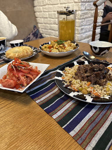 Read moreA stylized spacious central asian restaurant that nicely doesnt overpower the relaxed atmosphere of the place. The food is great. The never ending documentaries about Uzbekistan are supposed to add to the eastern vibe, but after sometime becomes annoying. Off the typical tourist path despite being located in the center of the left bank(touristy glassy shiney part of Astana). Hence dont expect to see authentic tapchans, aqsaqals and throw pillows. The decor is rather punctuated with the attributes of a chaikhana rather than being the staple. Perfect spot for the business people seeking clean expected experiences. Not what i usually seek for...