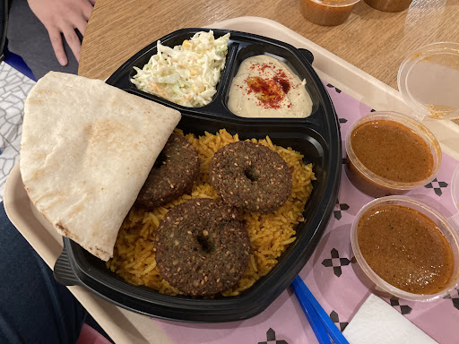 This is one of the better places to eat at for vegetarians in town, mostly because they serve decent falafel at somewhat affordable prices. With that being said, a lot has to be tweaked slightly for the food here to be really good. It is not bad mind you, it just has to be changed slightly to be much better. First of all, the runny sauces they bring with platters are too salty, like, even for me, who loves salt. At the same time, the coleslaw is not salted and spiced properly. Hummus is not bad, falafel was crispy on the outside, but for the almost 5000 KZT platter menu, there should be at least four of those falafel rings. Lastly, rice was ok. I love the ayran they serve as well, quite close to Turkish ayran though not quite. Overall, while it is not perfect, and not necessarily cheap, I think they are worth a trip every...