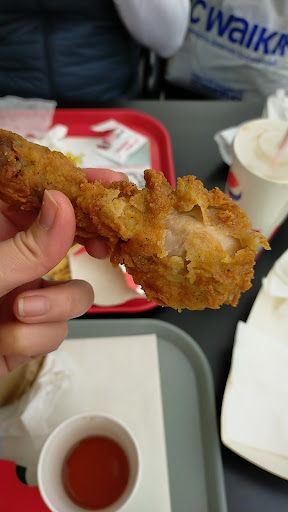 Read moreЗаказали,ножки и стрипсы с картошкой и колой,во-первых ждали минут 40,касса не работала,чеки не дают,брали с собой,когда получили заказ,решили поесть на месте,открыли стрипсы,которые все время берем в других филиалах KFC,а они размером меньше обычных в три раза,это что один стрипс на несколько частей разделили и обжарили,никогда с таким беспределом не сталкивались. Причем когда собирали заказ,на выдаче девочка открыла коробку со стрипсами и показала парню,он развел руками. Скандалить не стали,чтобы не портить настроение,а надо было. БОЛЬШЕ К...