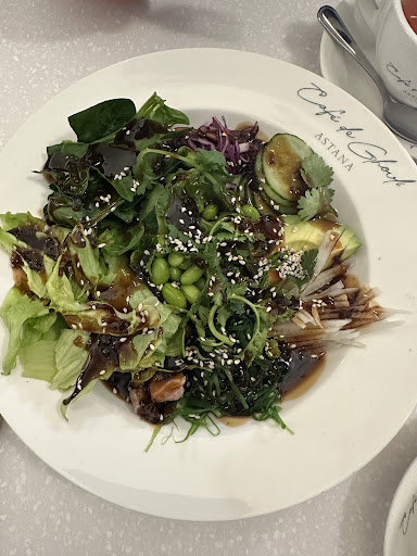 Почему-то во многих салатах стали добавлять острый соус. Стол маленький оказался, а тарелки огромные, не влезают! Но порции не такие большие, как сами тарелки)) Почему бы не использовать тарелки поменьше? У вас же в основном маленькие столики! В остальном нормально, свежие цветы на вазах (не смотря что столики маленькие 😅). Нам повезло, пока мы ужинали с 19:00 до 20:00...