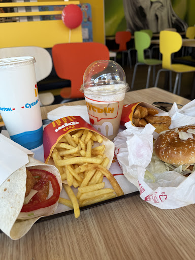 Read moreВ первые сегодня посетили данное заведение, и приняли решение что это был первый и последний раз! Так как ежедневно не ходим в Мак, для заказа подошли к стойке кассы, на что кассир с недовольным лицом сообщила о том, что заказ на вынос делается через терминал... Ок, прошли к терминалу, прикольно удобно, но в по окончании заказа терминал не выдал чек, и мы остались в неизвестности прошел заказ или нет и какой у него номер, если вы переводите людей на самообслуживание, следите за исправностью своей техники. Ну и с этим справились с горем пополам, забрали заказ. Что касается самой еды, били в шоке конечно от порций, заказали бургер мужу с двойной котлетой, и были в шоке увидив размер, он не присылал в диаметре 8 см, что называется "не то покушал, не то музыку послушал", напитки тоже разочаровали, брали фанту и колу, а по факту оказалась просто газированная вода со льдом и просто цветом...