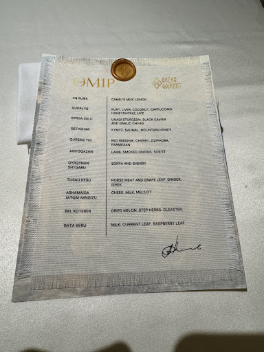 Our first time in Kazakhstan, we were looking forward to the tasting menu. As tourists without a local payment app, the reservation process was very inconvenient. The restaurant requires a 50% advance payment. Since we arrived on the same day as the reservation, we had to find someone in Almaty to make the payment – okay, we managed that. Upon arrival, we were shown to our table, and less than five minutes later, we had our first course. We weren't asked about wine or pairing. We'd barely swallowed before the second course arrived. If I hadn't said anything, we probably would have eaten all 11 courses in an hour. The food was very well cooked and very well seasoned. The lamb and horse cheeks were my highlights. The horse fillet was also good, but it was cold. I assume the entire menu was pre-cooked, and when I asked them to serve more slowly, the chef faltered. The food was good, but overall the restaurant needs to rethink how they handle prepayment and the service needs to be improved—it's not fast...