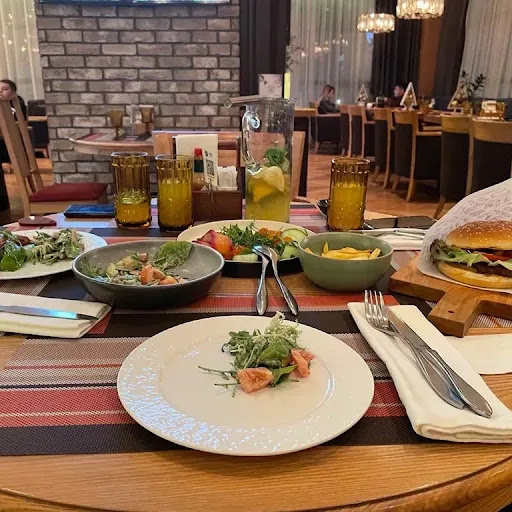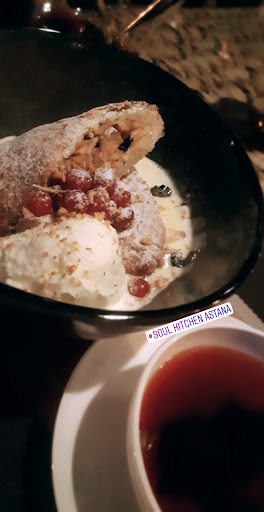 Read moreКухня весьма посредственная, исходя из того, что мы брали - салат с телятиной, бургер, глинтвейн, вишнёвая настойка на коньяке и что-то ещё по мелочи. От глинтвейна за 2500 тг ожидаешь хорошей порции с отличной подачей, а не пойло в граненом стакане с дохлой долькой лимона и всё. Ни специй, ни украшения, ничего! Не берите. Бургер тоже так себе. Котлета вообще ни о чем. А когда принесли, оказалось, что она полу холодная и уже пропитана соками овощей то тут сразу становится очевидно, что готовят их заранее. И их пафос когда они спрашивают какую прожарку котлеты вам - лишь пыль в глаза. Не берите! Коллеги брали стейк рибай и паштет с мармеладом - вот их хвалили. Им я готов доверять. Отлично пела девушка и играла на акустической гитаре. Да! Чуть не забыл - десерты и кофе тоже средненький. Короче, можно сюда идти провести вечер под музыку и вино, нет ужинайте в...