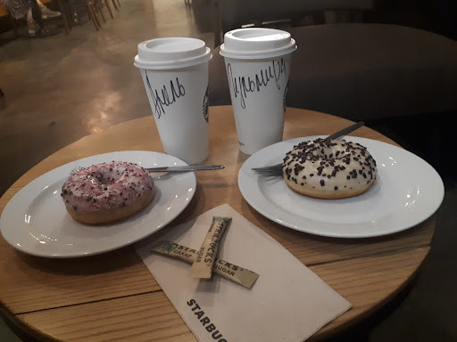 Read moreКаждый день приходила в Старбакс, все нравилось и атмосфера и вкус кофе, баристы и кассиры очень доброжелательные, но один единственный раз кассир , которую я впервые увидела была озлобленной, не поздоровалась, грубовато приняла заказ, в конце я попрощалась-игнор, второй раз-еле как сказала досвиданья, было жутковато от озлобленного взгляда кассира, в итоге позвала администратора, отдала карту Старбакс (хотя там были и копились баллы), больше не приду.Остальные сотрудники очень приветливые.Но после хамства одного кассира буду обходить стороной...
