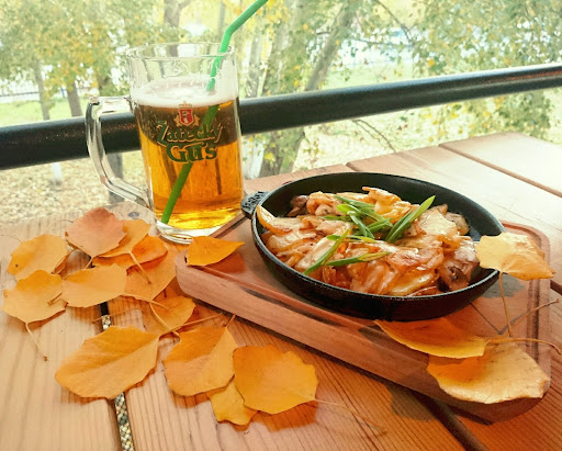 Read moreОчень уютная обстановка. Очень вкусная еда. Попробовала уху по-царски - ооооочень понравилась. Картошка с грибами всегда просто пальчики оближешь, но в этот раз почему-то ее не было. Поначалу цены кажутся слегка завышены, но порции хорошие. В среднем горячее 1600-2500 тг, стейк в районе 5000 тг, но приличный кусок мяса. Кофе из кофе-машины (но нормальный), баристы нет. Молочные коктейли вкусные, но испытала шок, когда мне его принесли - просто огромный стакан! Очень вкусное вишневое пиво. Я не поклонник сего напитка, но понравилось. Обслуживание ненавязчивое. Зал для некурящих (для курения отдельная зона). К оплате принимают дебетовые карты. Работают до 24.00. Сидели компанией в 6 человек, заказали каждый по горячему, пару салатов, очень много напитков, десерт, из спиртного пиво и водка. На человека вышло по 5300 тг. Лично мое мнение: отдохнуть парой или небольшой компанией -...