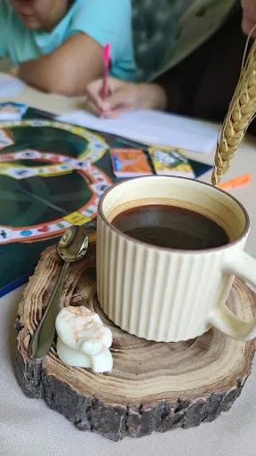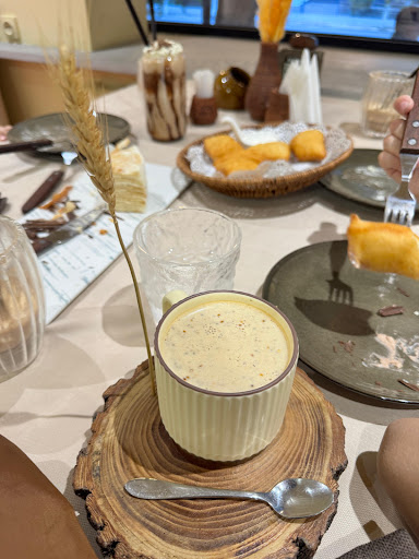 В настоящее время часто стали открываться заведения с нашим традиционным колоритом и это думаю хорошо, так как туристов очень много приезжают в КЗ. В целом место не плохое. Но чего то как будто не хватает. В туалете плохо и мало шла вода. Место однозначно не для детей и не с маленькими детьми приходить. Мы были с детьми и официант Рамазан очень нас помог, в части занести коляску. Очень вежливый и чутки. Соска упавшая на землю он положил в кипяток чтобы продезинфицировать. Думаю его надо повысить за такую чуткость внимательность с детям и к посетителям. Баурсаки были вкусными. Тортики тоже. Предлагаю самим делать пироги или тортики с тары. Чай был вкусный но...