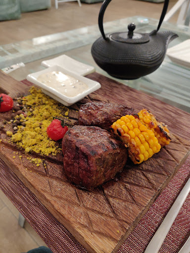 19.09.21г. Ровно к 22.30 поехали с мужем в этот ресторан. (Оказывается в Шымкенте в воскресенье все места закрыты, и народу мало). Когда зашли, нас встретил мужчина. К сожалению концертный зал - не работал. А, на террасе сидели два гостья, остальные места пустовали. Место - мрачное как -будто бы говорил муж. Но, место мне напомнил заведения в Кемере. Сразу захотела встать и потанцевать, играла музыка. К удивлению, кухня была вкусная. Заказали салат из запечённой грушей с блючизом, медальоны из телятины, сяке темпура с лососем. На гарнир - фри и брокколи с фасолью. Официант - старался хорошо обслуживать. Оставили на чаи. Вообщем место классное, но жаль что никого не было(снимаю одну 🌟. Хотели драйва и...