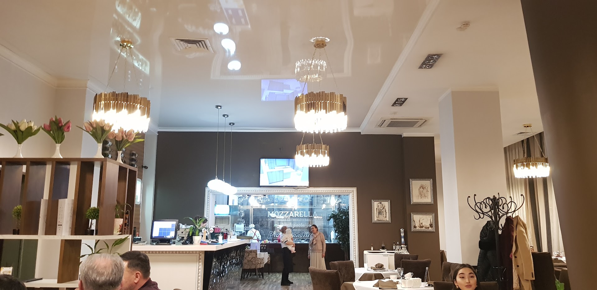 Роллы вкусные. Японская кухня хороша. Брали и на вынос, и там пробовали. Теперь критика: итальянская кухня средненькая. Приправ маловато, солят недостаточно. Салаты жирные, например легкий цезарь с очень жирной курицей. Ризотто - кашка, хотя вкусная, но не оригинальный вкус. Точно не стоит заказывать салат с грушей, курицей, сыром горгонзола - там ничего не сочетается + груша, такое чувство, что консервированная. Соусы неплохие к пасте, хотя опять же не хватает вкуса. Хотя пасту не переваривают, что уже радует. Десерты хорошие. Наверное лучший чизкейк в Шымкенте. Еще приду попробую тирамису. Пицца суховата: мало соуса. Брал только Маргариту. Отличная чесночная фокачча. Хотя для меня фокачча немного другой хлеб, не такой сухой, но в Моцарелле он вкусный) Хоть и не классический. В целом...