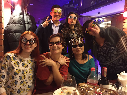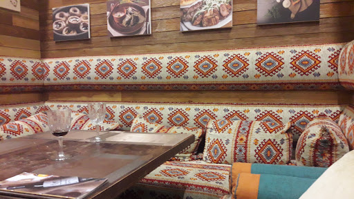 Read moreRestaurant de voleurs. Nous commandons du vin rouge sec, la serveuse revient avec une bouteille de vin rouge sucré, nous demandons donc à changer de bouteille avant qu'elle ne l'ouvre: on nous répond que c'est impossible car la bouteille est déjà enregistrée comme "sortie du stock"! Elle nous sert ensuite des verres gigantesques au lieu de portions normales, nous avons l'impression de boire dans un aquarium. Le vin n'était pas bon, et servi glacé de surcroît... Ma compagne brisera d'ailleurs son verre gigantesque, facturé 8000 tengue! Plus des frais de nettoyage, j'ai cru que c'était une blague mais non. Côté plats, la seule chose extraordinaire était la lenteur du service: j'ai cru que la serveuse était morte quelque part entre la cuisine et la table. L'ambiance était correcte, jusqu'à ce qu'un groupe ne vienne présenter un spectacle vraiment pas terrible, en éteignant les lumières (pratique pour manger!) et en mettant de la musique beaucoup trop forte. Résultat, 40 000 tengue pour deux personnes qui...
