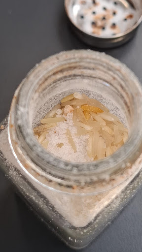 The salad itself had an odd balance: lots of roasted butternut, peppers, and unappetizing roasted eggplant. To make things worse, it contained whole black peppercorns, which made eating it unpleasant.