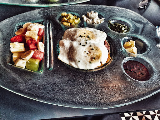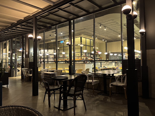Read moreI've been here twice. There are nice comfy seats and free WiFi for customers. The place is gorgeous to be honest, from the chalk art on the walls to the high ceiling, open space layout of the place. You can actually sit at the serving counter sort of like in a pub. It's just one of the many spaces. Carry a jacket if it's cold. Now let's talk food. The meals took an avg. of 7mins from ordering to being served. I've only had breakfast, twice, and boy was it delicious. English breakfast if I remember correctly and a mocha on the side. Tasty sausages, went well with the salad that had passion juice undertones. You can have the egg done as an omelette as I did and the glass plate the meal comes on will make you shy off. Butter, marmalade, guac on the side and some slices of bread. Large selection of breads and cakes. Tipped the waitress and went on my way burping that passion juice undertone thinking about how the place buzzes with life....