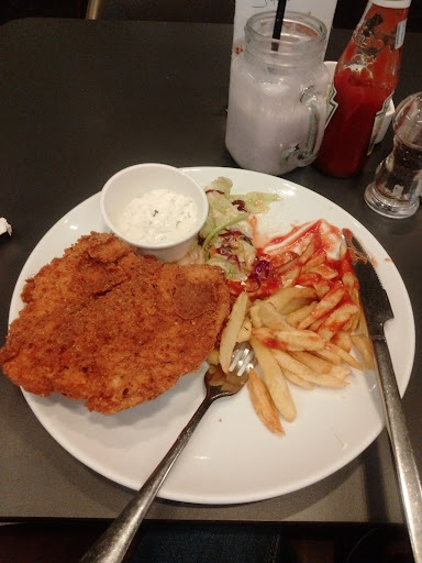 Read moreIt's a beautiful restaurant with an open space concept. There are booths inside near the counter and more tables and chairs sitting on the kind of outer spacing. There's a wide selection from the menu which I felt was well priced. I ordered the shawarma and fries. The food was well spiced and salt and tasted really good 😋. I forgot to take pictures because I was so hungry. I also ordered a pineapple and mint drink. It had a snazzy name which I didn't take note of, but the drink was good and went well with the food. Service was good. We went there at lunch time so I think due to the common lunch rush the staff took quite a long time to bring the bill. That's the reason for the four stars in service. Also got a slice of salted caramel cake and it was amazing. Overall the experience was good and would definitely dine...
