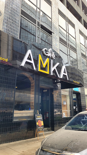 Cafe Amka is by Mawimbi restaurant ( look them out ) and they are next to Afro Fit gyms on the ground floor of Delta Chambers and access it through the back door by going down the stairs (opposite Zamara reception ) .