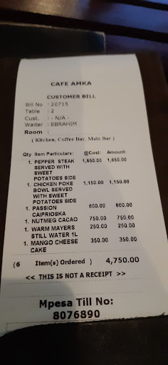 I have ordered their AMKA poke bowl, herbal infusions, and had their coffee. The bowl was tasty, colourful and well balanced in terms of food groups. It was served in a very artsy bowl. You cannot miss the details in their choice of utensils. The herbal infusions have been a miss for me. Either the tea has stayed too long, not been steeped long enough under the right temperatures or they put too little of it. I have found then bland. Their dawa is good. The coffee could be great. I have had both stellar service and not so great service.