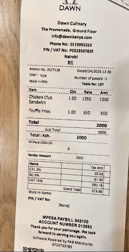 Read moreIf you're looking for a culinary gem in the heart of Nairobi, Dawn is a must-visit. From the moment you step in, you're greeted with warmth, professionalism, and a sense of refined hospitality that sets the tone for an exceptional dining experience.