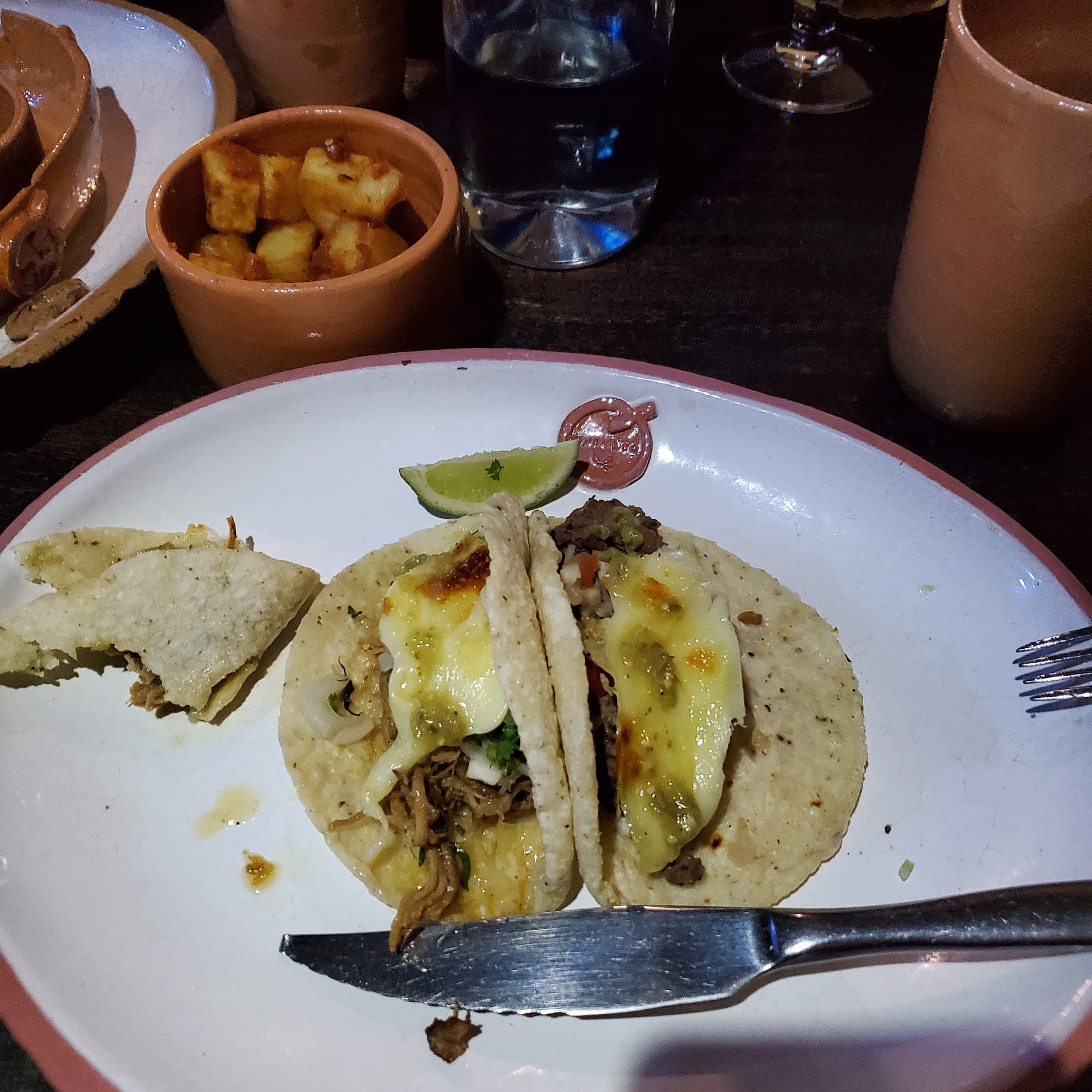 Read moreSo Fonda seems all about the sauces so it’s an unusual Mexican restaurant. It’s not about ordering tacos, or enchiladas or burritos, but ordering, say, an enchilada, but pick a sauce (and flavour) for that enchilada. But of course you ask, what exactly does that sauce taste like? An interesting experience! So my wife and I were bold enough to try the specialty, she chicken, me pork, with two different sauces (chocolate and cinnamon resp.)