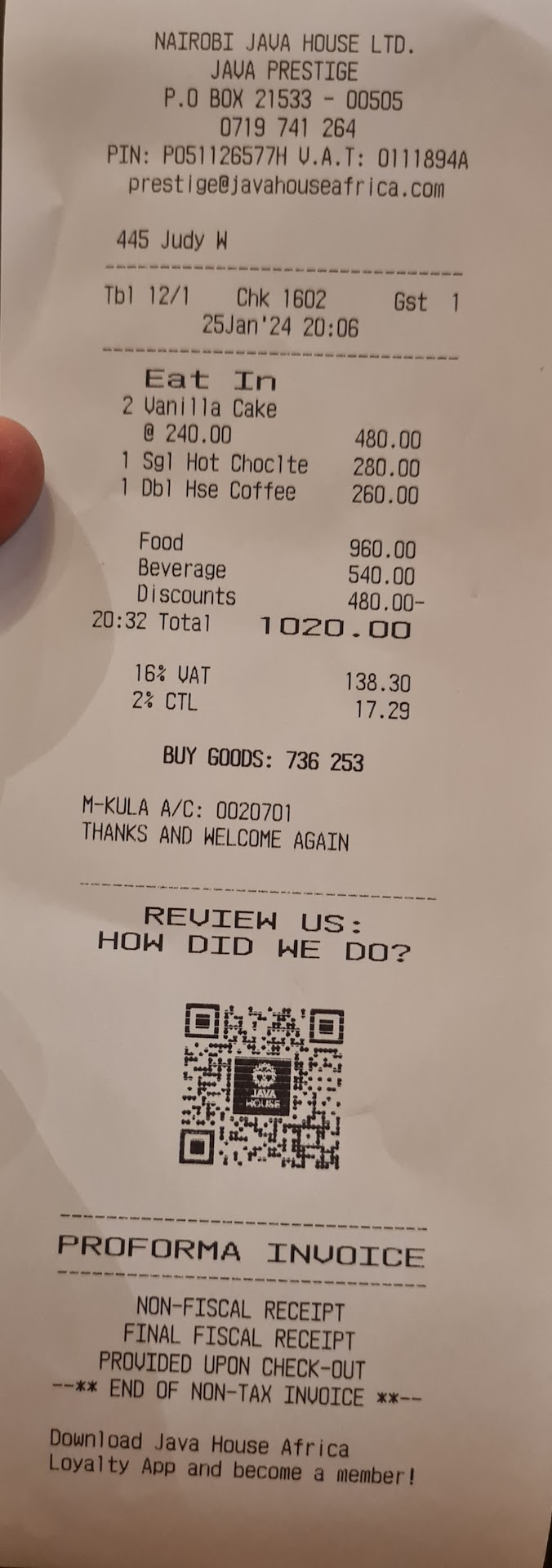 I had a fantastic experience at Java House Prestige Plaza! The ambiance is warm and inviting — clean and not as busy as other Java outlets, comfy seating and great lighting. It’s the perfect spot whether you’re grabbing a quick coffee, meeting a friend, or settling in for work.