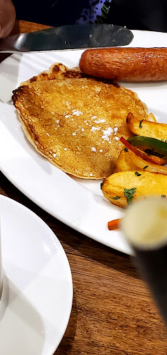 Food was okay nothing to ride home about. Pancakes were not fluffy as they usually advertise or how ive had them before. Also, there were no spoons so we had to use a plastic spoon to stir...