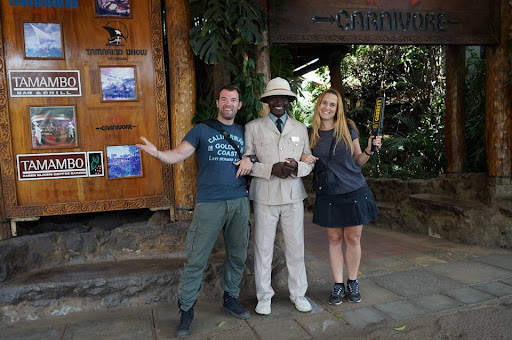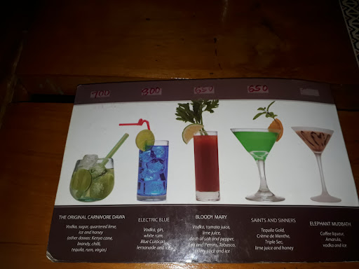 Is a good option in Kenya to eat crocodile meat, venison, pork or beef. Considering that it's in Kenya, the setting is acceptable. The waiters have colorful costumes. Outside, the tables facing the garden are more pleasant but surrounded by mosquitoes, and as we decided not to take malaria pills due to their adverse effects, we decided to sit inside the restaurant. Their staff is very friendly, always smiling and attentive to customer needs.