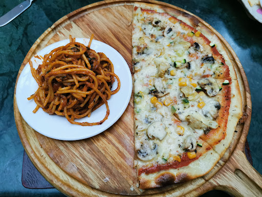 Complimentary flatbread with olive oil and beetroot yogurt sauce was provided. I sampled their seafood spaghetti (1900 KSH) and vegetable pizza (1600 KSH). Their spaghetti was good and had a tangy, savory tomato sauce, but seemed to have very little actual seafood, or very little visible chunks of seafood at least - the seafood could've been blended/mushed together with the sauce. Their vegetable pizza comes with a choice of five ingredients. I chose sweetcorn, mushroom, artichoke, and courgette. I also asked for olives but the chef forgot to put them. The pizza itself was thin-crusted and very delicious. It was perfectly seasoned and covered with a generous layer of cheese. The portion sizes are decent and can satiate a reasonably hungry person.