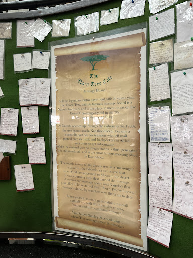 Thorn Tree Café is part of the Sarova Stanley, the oldest hotel in Nairobi and established in 1902. The hotel feels very upscale and luxurious. The Café has an indoor and semi-outdoor dining area, and the outdoor one contains the famous Thorn Tree that is the namesake of the Café and a billboard full of messages.