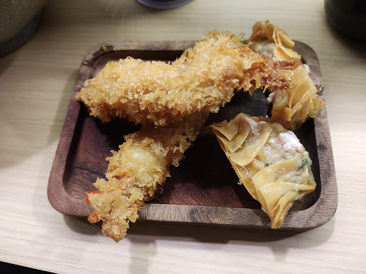 Orderan saya sushi dan ramen. Sushi served duluan, tapi server yg didepan muka saya tidak memberikan tableware apapun, saat si perempuan berbaju coklat bergaris itu lewat, saya tanya dimana saya bisa mendapatkan chopstick...dia malah melengos tanpa menjawab sepatah kata pun. What an attitude...Dan tentu saja saya tersinggung, baru setelahnya si server sushi memberikan dua garpu buat saya. Bayangkan, saya makan sushi pake garpu...