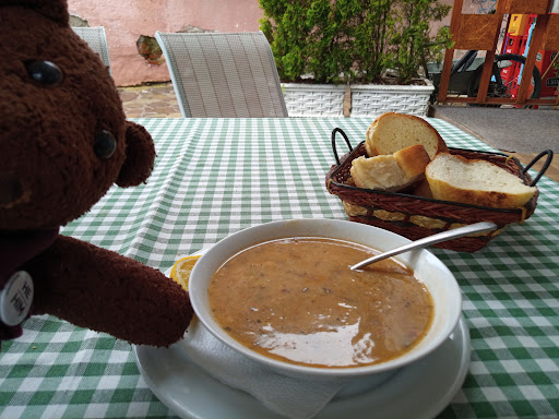 Read moreA teddy bear loves fish soup we had to give it a try. Not too bad for the price. It was spruced up with a squeeze of lemon and a good grinding of pepper. It was just a shame the accompanying bread ( although fresh) was basic baguette and not Kosovan or Albanian.