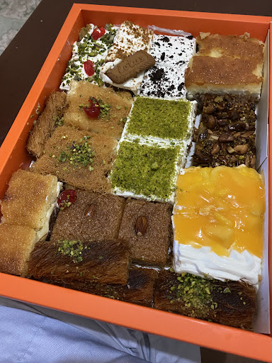 المحل جدااااا فخم صراحة .. والعاملين متعاونين لأقصى درجة ومحترمين جدااا و الطعم ولااا غلطة كأني بشتري من محل بالاردن اقسم بالله رهيب جربت عنده كلاج بالجوز الحشوة مخدومة من قلب و رب والله فيها الجوز مع القرفة ونسبة الحلاوة ما بتكتم النفس وكيكة التريليتشي التركية بالكراميل غرقانة حليب وطبقة الكراميل بتشهي و مليانة .. و عنده حلويات بالقشطة البلدي الصححح يعني مش القشطة التجارية وأي كلام ابدا عنننجد يلي بده بياض وجه وطعم محترم ياخد من...