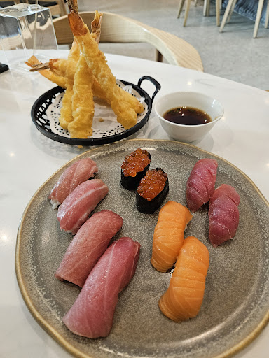 I recently had the pleasure of dining at this sushi restaurant and had a delightful experience. The atmosphere, while a bit dated, didn't quite match the exceptional quality of food and service they provided. However, the food itself was outstanding. I tried the seaweed salad, three types of tuna Nigiri, Eisa Maki, and shrimp tempura - each dish was a symphony of flavors, excellently presented, and truly delicious. The service was top-notch, with a special mention to Raj, the manager, and the rest of the attentive staff.
