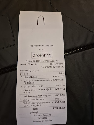 Read moreI recently dined at Topkapi Restaurant and had an enjoyable experience overall. The food was delicious, with a variety of options as shown in the receipt. The dishes we ordered included Jie Kufta, Cheese with Sujuk, Chicken Shawarma, Haslanmis Et, and the Chef’s Special Platter. Each item was flavorful and well-prepared, showcasing the rich tastes of Turkish cuisine. . The prices were reasonable for the quality of the food and the portion sizes were generous. Overall, I’d recommend Topkapi for anyone looking to enjoy tasty and authentic Turkish dishes in a...