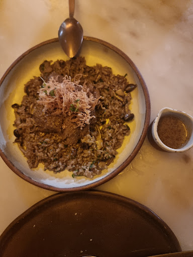 Famous restaurant with special menu. I had lunch here today the waiting line was too long but it worth the waiting. We had a table indoor and we started with welcoming bread basket and dip. Then we tried the salad ( charred) it was balanced well especially the kale and nachos and other ingredients with light sauce and it was chopped finely which makes it easy to eat. We only order from the shareable menu since we are not big eaters and we can try many dishes to share. I had black pepper tenderloin lollipop, short ribs rigatoni, and spicy maple shrimps. The food was tasty and rich with flavours as always. The steak lollipop was perfect even though i asked to be well done it was soft, juicy and easy to chew. The shrimps were spicy but not that bad it leaves a good after taste heat which makes you eat more. For drinks i ordered Mexican mule it was refreshing ginger drink but the glass was full of ice and I don’t think the portion was enough it was too small. The staff were available all the time and service was good and fast....