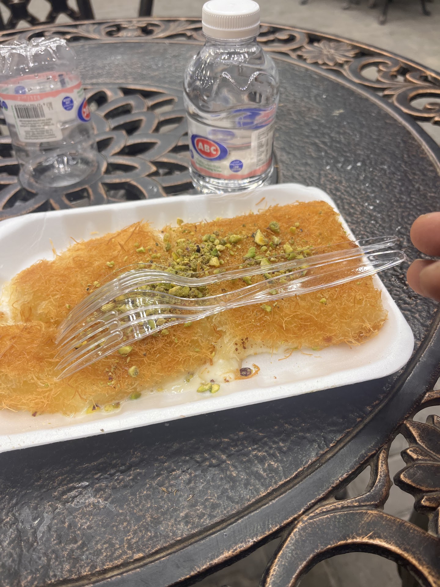 Read moreIt amazing how they make this wonderful taste of Kunafa, you can enjoy with there Kunafa while you drink arabic coffe which they serving there, wha not good there are the tabels about three or four, and place out side also during the summer, hardly you will find a place so you can park you car, but any way all this will disappear once you taste the Kunafa.. make sure to order first...