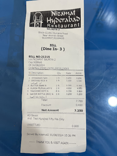Read moreTasted Mutton Biryani last week here in Salmiya branch above LuLu as I am a big fan of Hyderabadi Biryani having tasted the biryanis of almost all famous biryani restaurants in Hyderabad like Alpha(Secunderabad), Bawarchi(RTC X Roads), Paradise(Secunderabad), Sohail(Malakpet), Green Bawarchi(Srinagar Colony), Hyderabad House(Many branches), Pista House(Shah Ali Banda), Nayab(Charminar), Shadaab(Madina Center) etc..., but this biryani I never felt like any near to hyderabadi as the rice was over cooked and it looked completely different from authentic Hyderabadi Biryani. I went to this restaurant to buy biryani with so much of expectations as I am a big fan of Hyderabadi Biryani but all my hopes were lost. Also the Haleem you are selling in box of Pista House, it is no match to original Pista House Haleem and also the Haleem did not look fresh but looked as if it was stored one(may be). I felt vey happy by seeing the menu and wanted to taste all items but after tasting Biryani and Haleem only I have decided not to taste any more dishes here. I don't know about Fahaheel branch but the taste of Biryani and Haleem in this Salmiya branch is not up to the expectations of authentic Hyderabadi cuisine. Sorry to say this but this is what I...