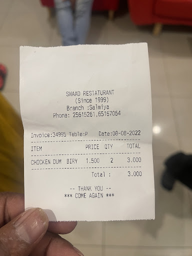 Read moreI recently ordered a Masala Dosa from Swaad Restaurant in Salmiya, and was extremely disappointed. The taste was nothing like what I’ve had from them before—it was bland and just didn’t taste right. To make it worse, instead of the usual coconut chutney, they gave mint chutney, which completely ruined the experience. This is not what I expect from them. Very bad experience overall. Not recommended to order from this...